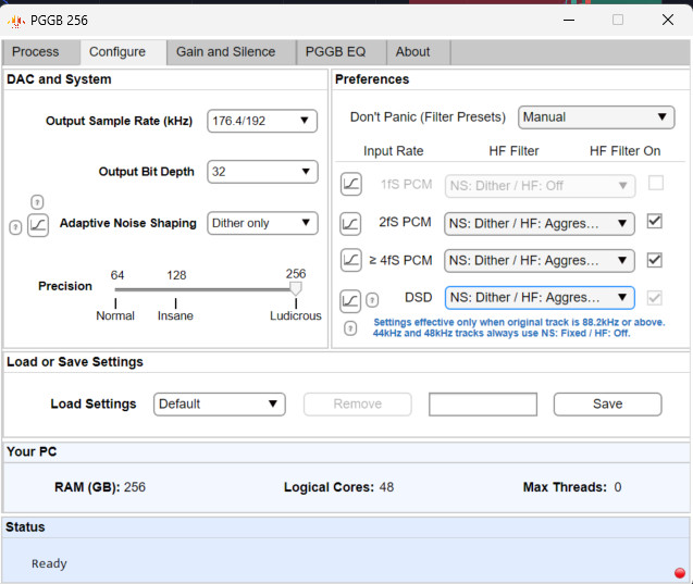 These aren’t hard rules, so just experiment. That said, if you enjoy what PGGB does, you’ll most likely just stick to its maximum sample rate, precision, and bit depth.