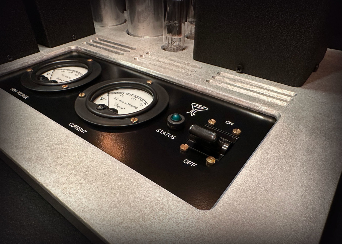 The A/Machines also debut a new visual design language offered by Treehaus Audiolab, inspired by early Klangfilm and Western Electric amplifiers. The A/Machines utilize large Simpson analog gauges, heavy 6mm aluminum plinths, crinkle powdercoat enclosures, and brass details throughout. A matching preamplifier, that goes to 11, demonstrates the design language on our existing preamplifier electronics.