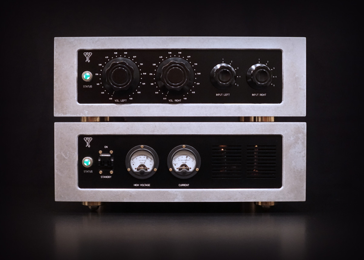 Engineered and built by legend Radu Tarta, the foundation of the A/Machines is similar to our existing excellent 300B amplifier inspired by Susumu Sakuma. A 10Y/801A drives the famed Western Electric 300B though a Finemet-Core interstage transformer made for Treehaus Audiolab in Japan. The output transformer, also with a Finemet-Core, utilizes a non-traditional impedance loading which eliminates the typical darker, syrupy sound of most 300B designs. Coleman filament regulators on separate dedicated DC supplies provide ultra-clean heater current to the directly-heated tubes.