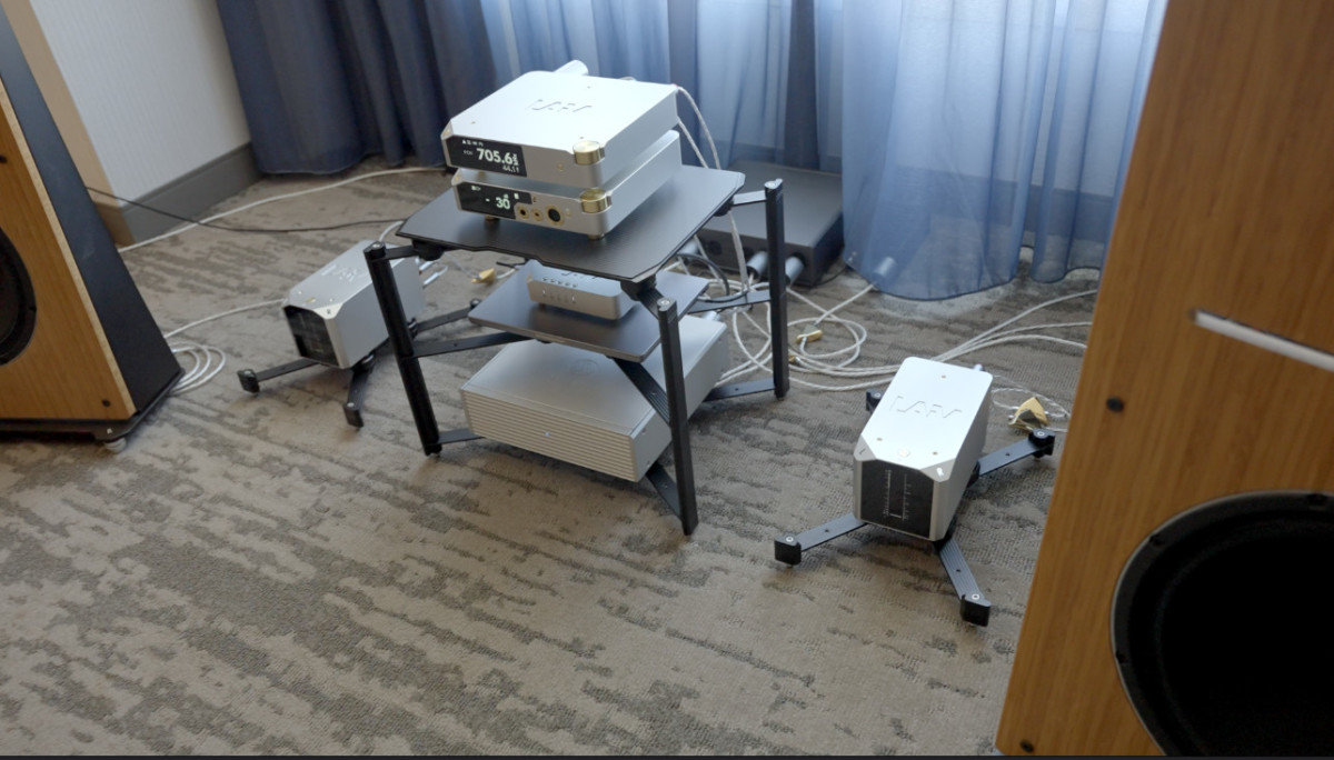 QSA Lanedri made their AXPONA debut this year, and it was one of the rooms I was most eager to visit. I’d heard whispers about their technology, especially their claim that a $5 Amazon power cable could be transformed – through their proprietary treatment- into something that rivals ultra high-end cables. That’s a bold statement, and I wanted to hear it for myself.