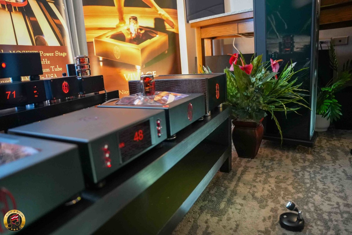 Amazingly rich and dynamic sound from this room. Rogue Audio debuted the new RP-3 balanced tube preamplifier ($3,495), a feature-rich evolution of their RP-X platform, offering flexible connectivity, home theater bypass, and sleek black or silver finishes. Paired with their flagship Stereo 100 Dark amplifier ($4,995) and Magnepan 1.7x speakers, the system delivered dynamic bass, a natural midrange, and refined detail. Components included Darwin cables, a Benchmark DAC3 B, and streamers from Aurender and Eversolo.