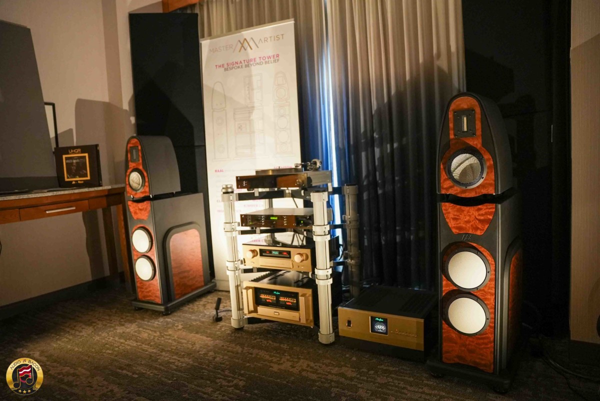 Master Artist Audio, the custom speaker line from Audio Video Artistry, presented their Signature Towers driven by a full suite of reference-level gear. At the front end: the Accuphase C2900 preamp ($25,975) and A80 amplifier ($26,575), paired with a Burmester 151 streamer ($27,575) and 217 turntable ($25,000). Power conditioning came via the Accuphase PS1250 ($17,575), with everything resting on a Solid Tech Rack of Silence and connected by Kimber Cable throughout.